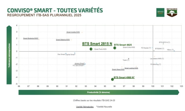 CONVISO® SMART est un nouveau concept de désherbage en betterave sucrière qui combine deux principaux composants : les variétés modernes de betteraves BTS et l'herbicide spécial CONVISO® ONE.