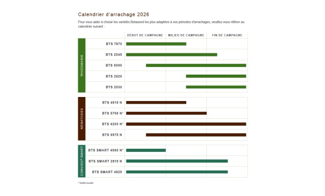 Afin de déterminer le nombre requis d'unités de semences pour votre culture de betteraves à sucre, entrez la superficie prévue pour votre culture de betteraves et réglez l'espacement des rangs et l’espacement sur le rang. Vous recevrez ensuite la quantité de semences de betterave sucrière adaptée à vos besoins
