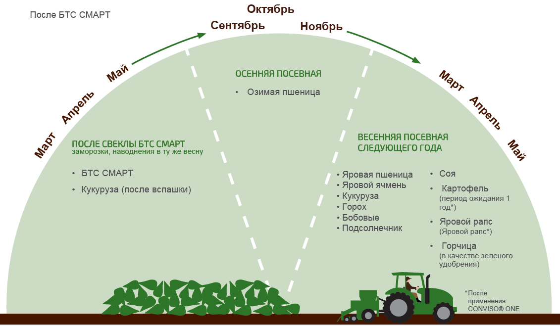 С остатками корнеплодов гибридов СМАРТ следует бороться в следующей культуре с помощью гербицидов, не относящихся к классу ALS-ингибиторов.